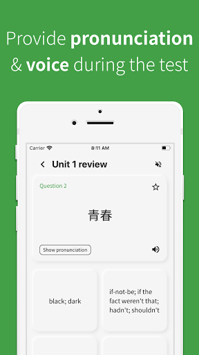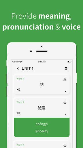 Non ti preoccupare.Le parole HSK supporteranno la voce cinese, quindi puoi imparare a leggere.