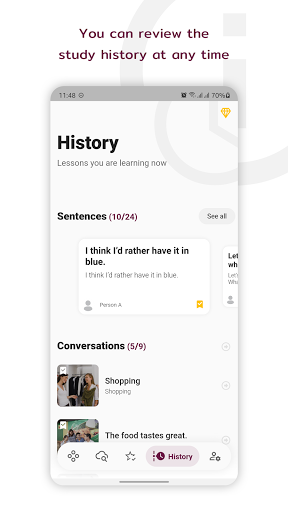 Non hai bisogno di sforzarti di diventare un madrelingua inglese.C'è un modo semplice per farlo: prima, ascolta e ripeti;In secondo luogo, prendi una registrazione del tuo discorso per confrontarli con gli altoparlanti dell'app, quindi ripeti i passaggi sopra e ancora.Ricorda di continuare a monitorare i tuoi progressi di apprendimento con gli strumenti supportati dall'app.Vedrai le differenze dopo anche un paio di giorni.