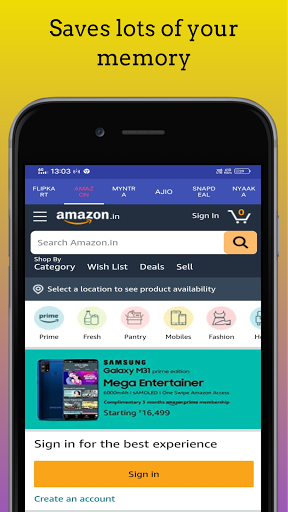 By Downloading this stand alone app you can really save 1GB of phone storage, This single app has India's leading online shopping apps like mantra,Flipkart,amazon,ajio,nyakka and more