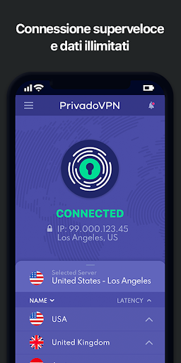 PrivadoVPN è la VPN gratuita senza pubblicità, veloce e sicura di cui ti puoi fidare. Basta un clic per navigare in Internet in modo sicuro e anonimo. VPN 100% gratuita con velocità illimitata.