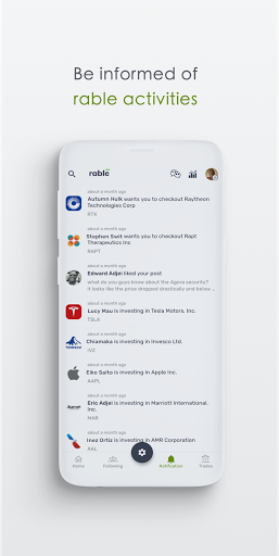 Rable è una piattaforma di investimento finanziario costruita per collegare investitori, condividere intuizioni, traccia il tuo portafoglio ed esplorare un nuovo paesaggio di investimenti sociali.