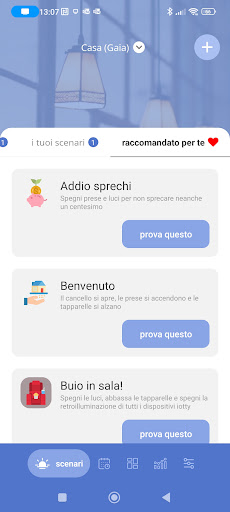 Prendi il pieno controllo della tua Smart Home iotty 24 ore al giorno: controlla luci, tapparelle e prese creando infiniti scenari e automazioni basati sulla tua posizione, sull'orario o eventi come alba, tramonto, condizioni meteo, luminosità e temperatura della stanza.