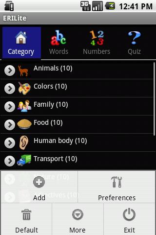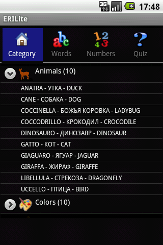 ERI (English Russian Italian) è un programma che permette di imparare alcuni vocaboli semplici in tre diverse lingue.