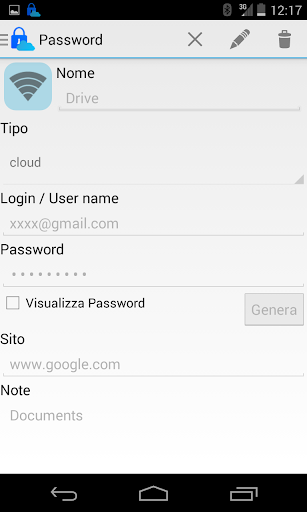 Con MyPassword risolvi tutto ciò. Imposti una Password per accedere a tutte le tue password. Il database è criptato con algoritmo AES -256 (il massimo della sicurezza che si può avere su uno smartphone), anche se perdi il dispositivo non potranno recuperare le tue password.