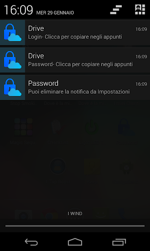 Con l'icona nella tua barre delle notifiche può richiamare immediatamente MyPassword e con un click copiare la tua login e password. MyPassword crea due notifiche nella tua barra dove selezionandole può copiare login e password negli appunti e copiarli dove ti serve. In questo modo puoi avere tutte le tua password differente aumentando la tua sicurezza.