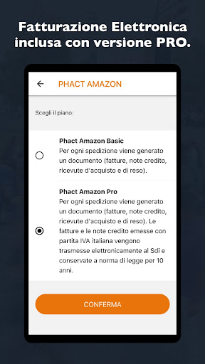 Se scegli la versione PRO di Phact Amazon, le fatture elettroniche saranno