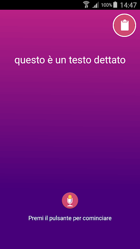 Questa applicazione permette di dettare in tutte le lingue supportate dall'input vocale, e in seguito permette di ricopiare negli appunti il risultato ottenuto.