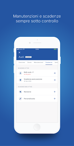 INSERISCI I DATI DI MANUTENZIONI E SCADENZE e ricordarti della prossima revisione, della scadenza della polizza assicurativa o di effettuare il cambio gomme sul tuo veicolo non sarà più un problema. Mai più dimenticanze!