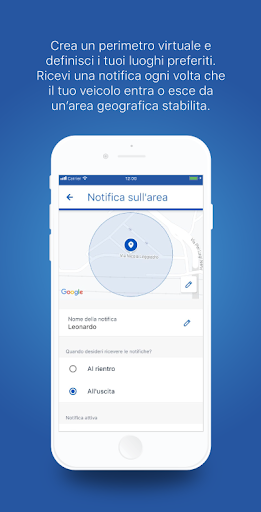 PERIMETRO VIRTUALE che corrisponde a un’area geografica del mondo reale. Con GT ALARM puoi definirlo direttamente su mappa dal tuo smatphone e puoi utilizzare questa funzionalità (Geofencing) per soluzioni di parental control (es. se si un genitore apprensivo che vuole verificare che suo figlio neopatentato non esca dalla città) o, più in generale, per soluzioni di sorveglianza e sicurezza.