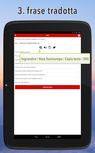 Con il semplice tocco di un pulsante l'app ti fornisce la traduzione e la pronuncia di qualsiasi frase tu abbia bisogno.