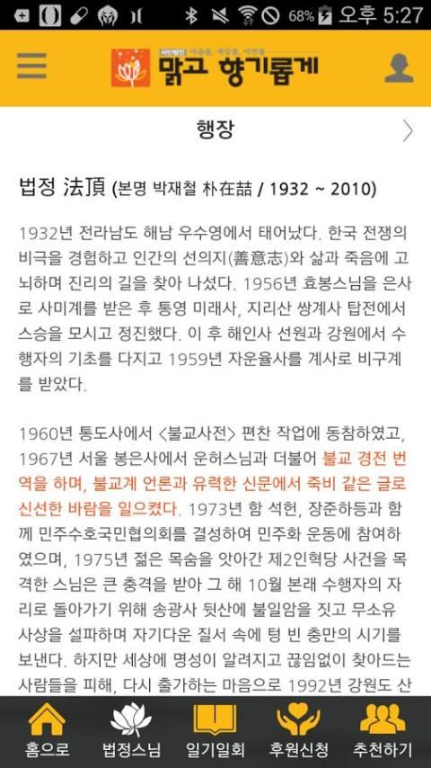 Our hearts with the world and nature, based on clear flavors teachings of the Buddha original look intact, clear flavors gakkumyeo alive with activity and neighbors to go to, such as one to preserve, protect nature, to promote specific silcheonhaeng clear and fragrant which aims to implement social, pure citizens can participate all together if you will.