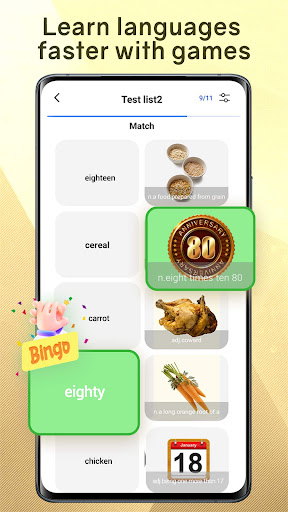 Impara le parole in inglese aiutandoti a imparare le parole inglesi in modo semplice ed efficiente con la scheda flash e la teoria della memoria di Ebbinghaus👍, ti consente di imparare le parole inglesi con scheda flash che contengono immagini, pronuncia, frase di esempio e ti consente di imparare l'inglese per argomento, per piano;Impara le parole inglesi forniscono anche vari test per rafforzare l'apprendimento. 👍