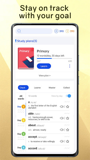 ⏰ Impara parole inglesi per piano: puoi configurare il numero di parole che vuoi imparare al giorno;Fornire il check-in per l'apprendimento