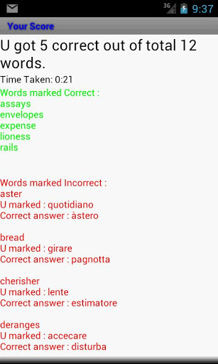 le parole spesso segnate correttamente dall'utente non venire di nuovo nei test