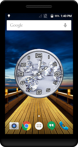 Diamond Clock Live Wallpaper Mostra un orologio analogico di alta qualità.