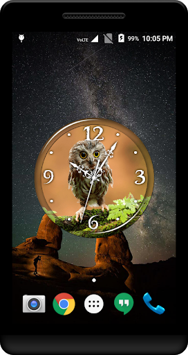 Owl clock live wallpaper shows a high quality analog clock.