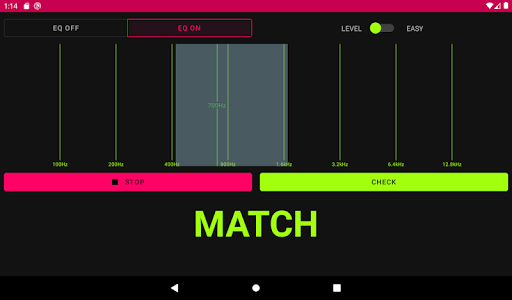 Questa app ti aiuterà se sei un audio produttore, un tecnico audio o solo un musicista.Dovrai indovinare quali frequenze sono aumentate in audio, allenando così le orecchie per ascoltare correttamente lo spettro audio quando si lavora con i tuoi mix.