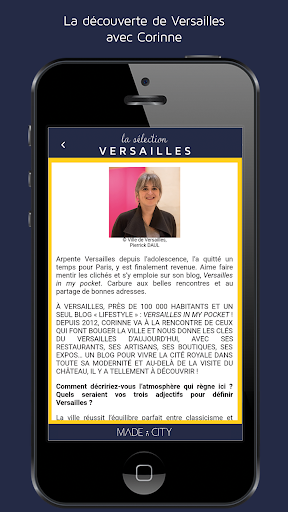 L'applicazione "Selection Versailles" consente di trovare tutte le informazioni contenute nella casella: