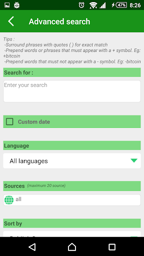 -Advanced search news by title,date,source or language .