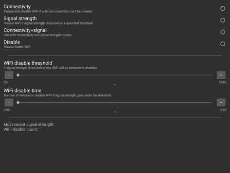 Stable WiFi allows you to set a threshold for your WiFi signal strength. When the WiFi signal drops under this threshold, your WiFi radio is temporarily disabled for a configurable amount of time, which allows your phone to fail over to a cell data connection.