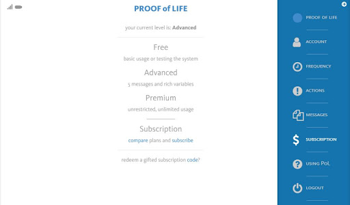 Through your mobile and/or PC, the My Proof of Life system regularly verifies, according to a frequency defined by you, that you are alive and well.