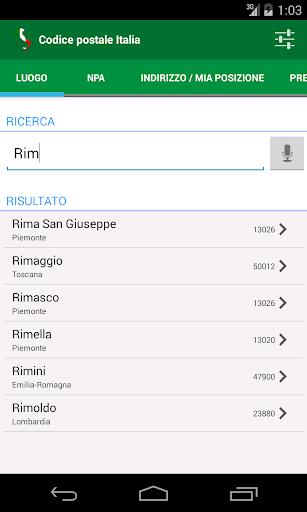 - Ricerca per codice postale