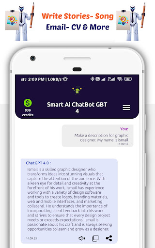 ★ La nostra scrittura intelligente di AI Chatbot GBT 4 ti consente di parlare con un'intelligenza artificiale con un flusso di conversazione naturale e goderti i vantaggi di un assistente intelligente.