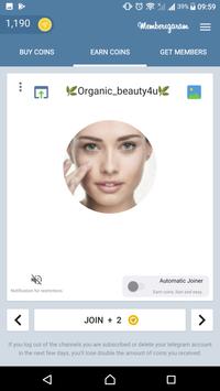 🔅 Join to offered Telegram channels and get 2 coins for each, then you can get how many members that you like in "GET MEMBERS" part.