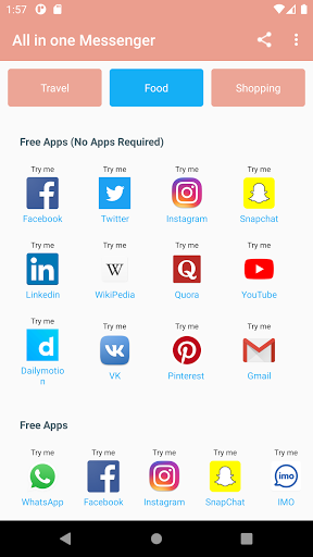Questa app contiene tutti i famosi siti di social network come Facebook, Twitter, Instagram, Snapchat e Whatsapp, tutte le app Messenger. Puoi facilmente navigare sulla tua app dei social media preferita e utilizzarlo facilmente.