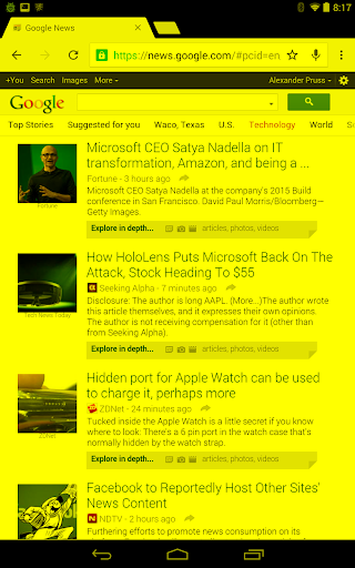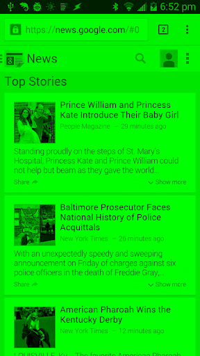 Questa non è una sovrapposizione: rimprovera completamente i tuoi colori in tutte le app. (Potrebbe non essere compatibile con le applicazioni di registrazione e screenshot dello schermo, però.)