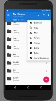 * File Manager – Manage your files like you do on your desktop or laptop using Multiple Select, Cut/Copy/Paste, Move, Create, Delete, Rename, Search, Share, Send, Hide, Create Shortcut, and Bookmark; operations can be performed on local files (on Android device) or remotely (on your computer)