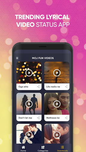 Moj Tutti i tipi Language Short Video Stato disponibile. Questa collezione App lot di stato video per impostare il nuovo stato video giornaliero e condividere con i social media. BR>