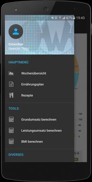 Mit dieser Anwendung haben Sie die Möglichkeit, Ihre Sport- & Ernährungsziele mit Hilfe eines selbst gepflegten Ernährungsplans zu überwachen. Erreichen Sie Ihre persönlichen Sportziele und erkennen Sie Ihre Fitnesstrends.