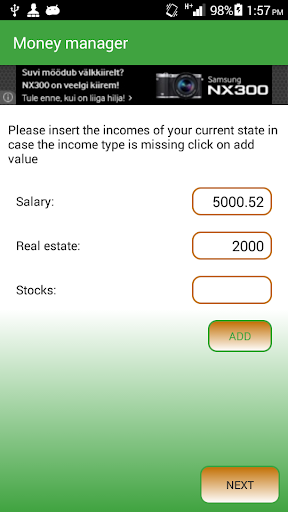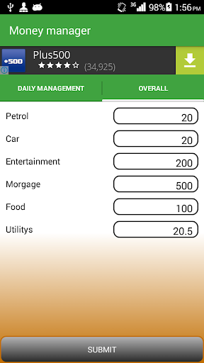 Welcome to money manager.A small application for everyday money management.Keep your daily budget in balance by managing your finances and see how much it is with just one click.All the data which is shared to the application is saved to your own device and is not shared by anyone.Just you with just a simple finance manager application