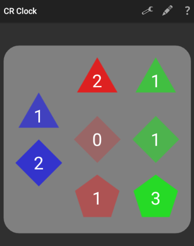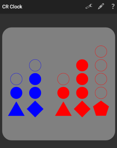 The app, which is meant primarily as a pedagogical tool, offers various designs of a Chinese Remainder Clock, and works with 12- and 24-hour time. Users can experiment with incrementing or decrementing various units to see how the clock works, or can modify the time directly. Just touch the screen to reveal the various options.