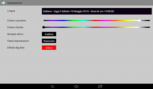 - Effetto Big Ben: ad ogni ora l'app riproduce il suono del bigben