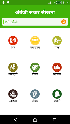 Hindi Learning English communication application supports learning to communicate with him intuitive, effective, and not boring on the smartphone. Application helps you improve your ability to communicate in English, support learning, study, travel, study abroad, export labor ...
