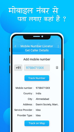 Numero di telefono L'applicazione Tracker ti aiuta a tracciare qualsiasi numero di telefono dall'India Puoi cercare qualsiasi numero di cellulare per trovare il nome del contatto e la posizione Verrà visualizzato l'operatore della città, l'operatore di stato, del paese e del servizio del numero di telefono e la posizione geografica verrà visualizzata sulle mappe.