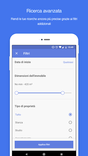 - Personalizza la ricerca filtrando le offerte in base a: posizione, prezzo, numero di stanze, data di inizio del contratto, dimensioni della proprietà e molo altro!