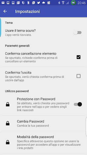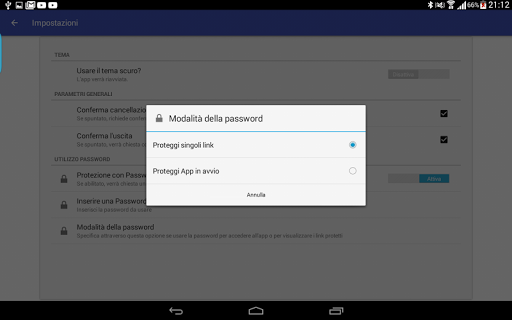 La password può proteggere l'accesso all'intera app, oppure a vostra scelta, solo i link che decidete di tenere "protetti" (e nascosti).