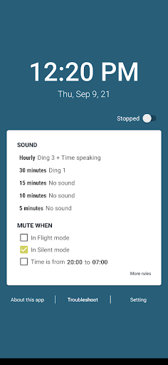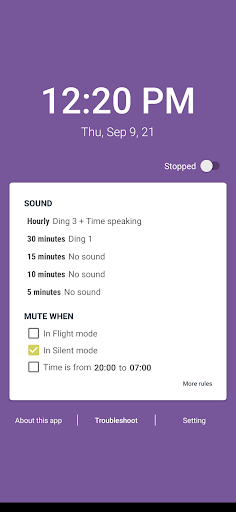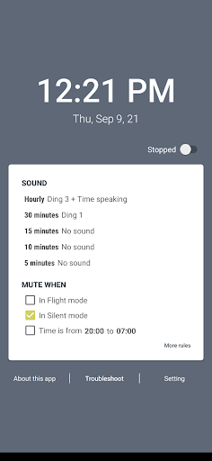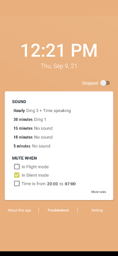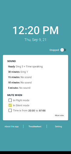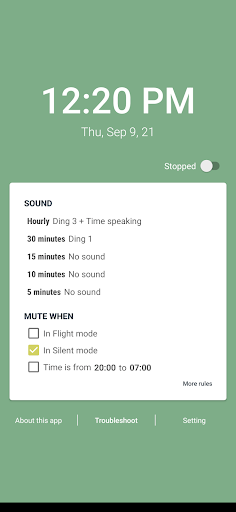 - Riproduce un suono in un momento specifico per aiutarti a essere consapevole. Puoi impostare suoni diversi per tempi diversi, ad esempio: Cuculo per ogni ora, Ting-ting per mezz'ora...