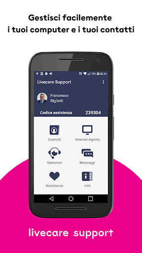 Livecare Support è una piattaforma software che ti permette di controllare da remoto qualsiasi computer (Windows, macOS) e dispositivo mobile (Android, iOS) per fornire assistenza in maniera rapida e veloce.