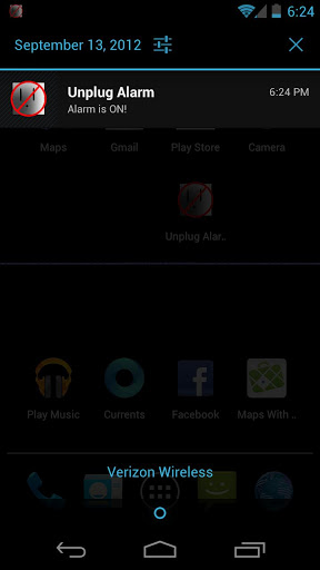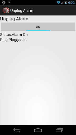 When turned ON it will sound a loud annoying siren when the phone is unplugged from its charger, until the alarm is turned off. When enabled and minimized, an alert is shown as a reminder that the alarm is on.
