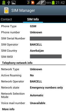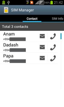 SIM card manager is a tiny tool that reads your SIM card and give you many helpful informations. It also help you to manage contacts in you SIM Card, you can view all your contacts stored on SIM Card, create a new contacts (store to SIM card), modify a contact or delete contact(s).