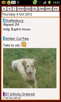 Unlike any other app currently available on the market, it is a rich text diary in which events are entered directly onto the page in free-form, like a word-processor. Events can be styled using a large variety of fonts and typefaces, interspersed with pictures, smileys, web-links and pretty much anything else you can think of.