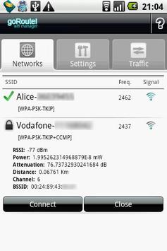 goRoute! Wifi Manager is application that allow you to connect in wifi area with your device, and show available access points.