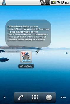 Include an AppWidget (goRoute! Switch) to add to your own home, for switch on/off Wifi.
