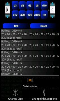 The D20 Dice Roller also includes a setting to change the dice type and a hit location which is also customizable to the users liking.