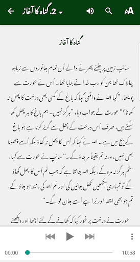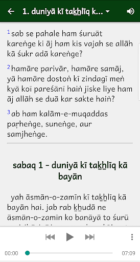 The text is in three scripts: Urdu (اردو), Devanagari Urdu (देवनागरी उर्दू), and Roman Urdu, so you can use whichever you prefer. Every study has the audio as well as excellent questions.