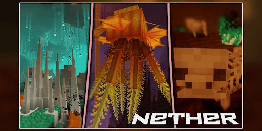 Our application is free. After installing it, you can easily download such mods for mcpe and add them to the game: nether update mod, find the nether map and nether cats mod.